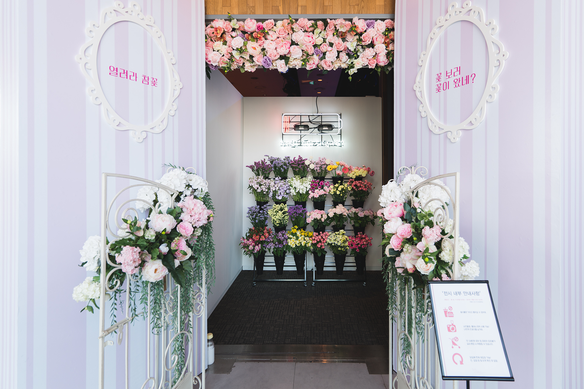입구부터 눈길을 사로잡는 대형 꽃 웰컴게이트를 시작으로 연인이 사랑을 완성해가는 단계인 ‘사랑의 설레임’, ‘고백의 설레임’, ‘영원의 설레임’의 3개의 테마 공간과 ‘플로리스트의 작업실’ 테마 공간 등 총 22개 방으로 구성돼 다양한 볼거리를 제공하는데요. 곳곳이 카메라 셔터를 누르기에 좋은 포토존 같아서 아기자기한 소품을 함께 활용하면 인생샷을 건질 수 있답니다.