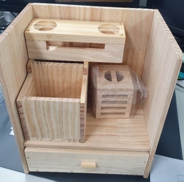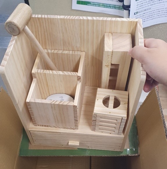 약속상자는 ‘어르신 먹거리 상자, 미혼모 응원 상자, 어린이 학용품 상자’ 등 다양한 목적으로 진행되어 왔습니다. 2020년 약속상자는 ‘장애인 자립을 위한 DIY 소품 상자’ 만들기로 정했습니다. 생활 속 소품인 연필꽂이, 서랍책장, 무드등, 우드 스피커 4종 소품을 DIY(Do It Yourself)로 직원들이 직접 만들어 기부하는 행사로 진행되었답니다. 이전까지는 직원들이 한 곳에 모여 약속상자를 함께 제작한 반면, 금번에는 COVID -19로 인하여 대규모 인원의 모임을 피하고 소규모 단위로 가족 등과 함께 직접 제작하며 재미를 느낄 수 있도록 운영하였습니다. 만들어진 소품들은 일부는 장애인에게 기부되고, 다른 일부는 장애인 자립을 돕고 있는 밀알 복지재단 산하 굿 윌 컴퍼니 매장에서 일반 고객들을 대상으로 판매됩니다. 판매수익은 근로 장애인의 급여, 장애인 시설 개선 등의 목적으로 사용될 예정입니다.