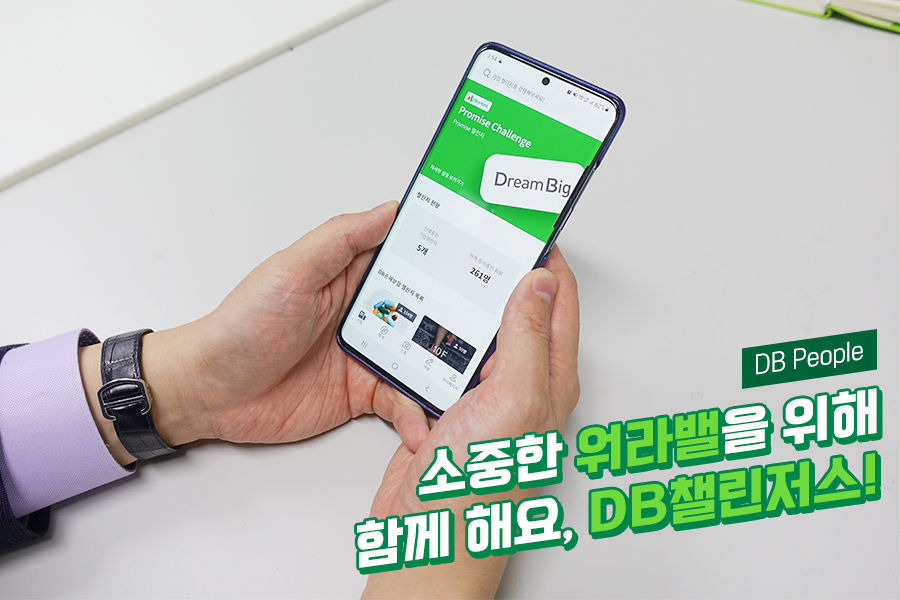 2월부터 시작된 ‘DB챌린저스’에는 두 달 만에 300여 명의 임직원들이 참여했다. 참가자는 매월 2~3주 단위의 기간을 정해 5~6개 주제 중 선택한 챌린지의 달성 조건을 모바일로 인증하면서 스스로와의 약속을 지켜 나간다. 챌린지 주제는 ‘운동, 생활습관, 다이어트 등 건강관리’ 뿐만 아니라 ‘감정관리, 가족’ 등 생활 영역까지 넓혀 매월 다양하게 구성하고 있다.