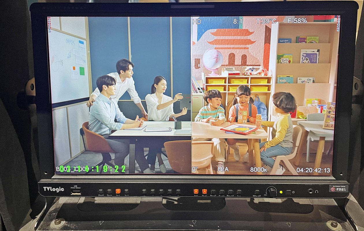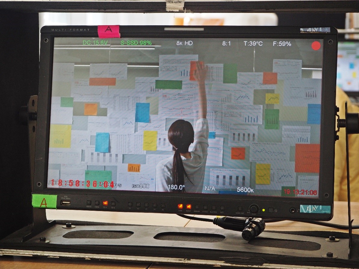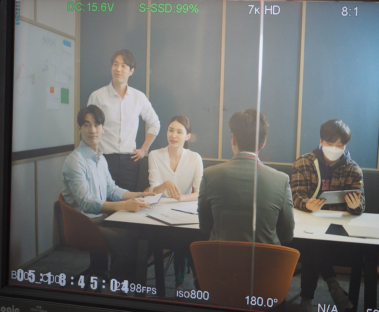 변화를 꿈꾸는 DB그룹이 보여주는 새로운 모습을 4분할 화면을 활용해 표현했다. 각자의 공간에 떨어져 있는 듯하지만, 알고 보면 함께인 DB와 고객의 모습을 한 화면에 담았다. 화면 간 합이 중요한 만큼 일어서는 정도와 손 위치 등을 바꿔가며 여러 모습으로 반복 촬영을 진행했다. 계속되는 앉았다 일어서기에도 배우는 카메라가 돌자 피곤한 기색 하나 없이 활기찬 모습으로 촬영에 임했다.