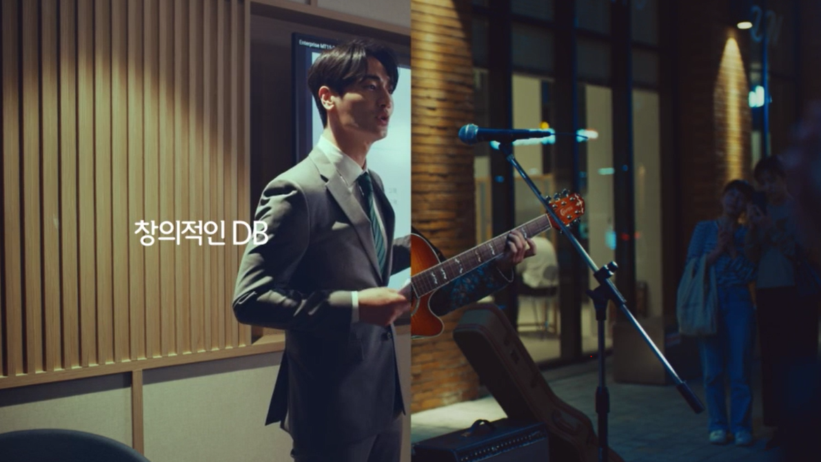 열정적으로 프레젠테이션을 진행하는 DB그룹 직원과 거리에서 버스킹 공연을 펼치는 젊은 청년의 모습이 마치 한 사람처럼 연결되어 나타난다. 고객을 위해 끊임없이 고뇌하고 혁신적인 방법을 시도하는 DB의 곁에는 새롭고 창의적인 방향으로 생각을 표현하는 고객이 있다.
