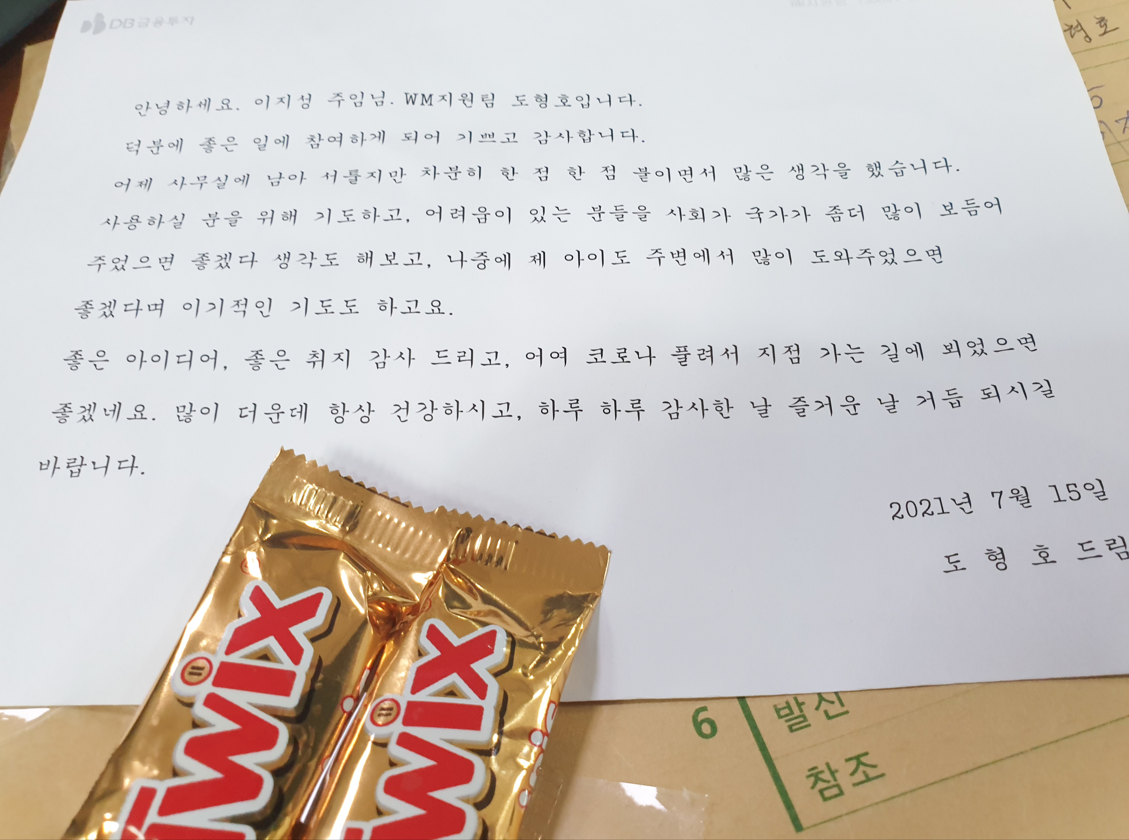 캠페인에 참여한 직원과 가정에서도 이를 계기로 점자벽보의 역할을 처음 알게 된 경우가 많았다. 이 위원장은 “직원의 어린 자녀가 쓴 손 편지를 전해 받기도 하고, 사내 한 팀장님으로부터는 어려움이 있는 분들을 사회와 국가가 좀더 많이 보듬어 주었으면 좋겠다며 좋은 아이디어와 좋은 취지에 감사한다는 편지도 받았습니다.”라며 흐뭇해 했다.