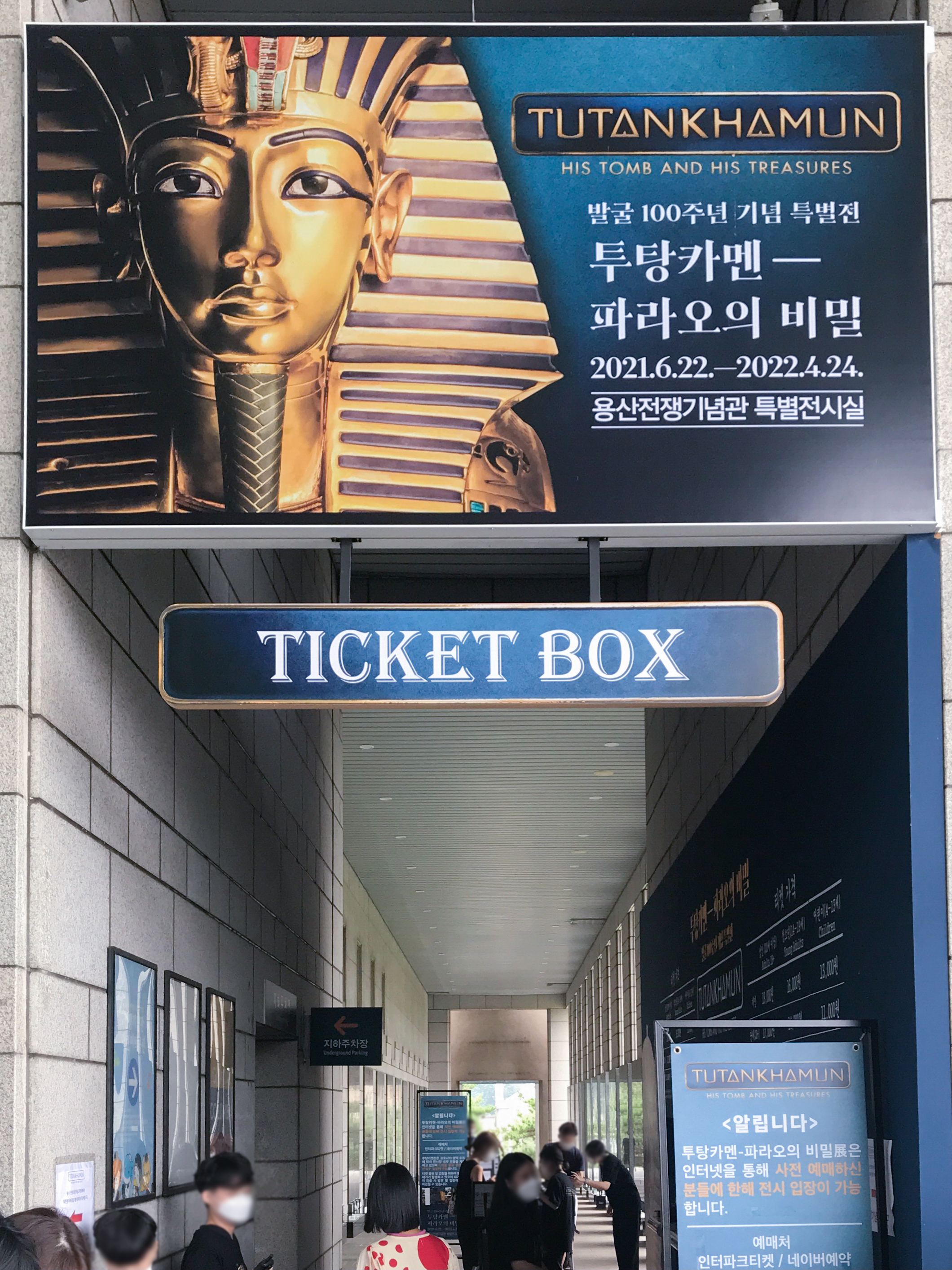 <투탕카멘: 파라오의 비밀>전은 오는 2022년 4월 24일까지 용산전쟁기념관 특별전시실에서 열리고 있어요. 코로나19 상황에서 안전한 관람을 위해 방역 패스를 적용하고 있는데요. 전시장 방문 전 접종 완료 전자(앱) 증명이나 종이증명서, 스티커, PCR 음성 확인서 등 간편한 방역 패스를 꼭 준비해 주세요. 전시장 곳곳에는 코로나19 바이러스 99.9% 제거하는 공기청정기가 설치되어 작동 중입니다.