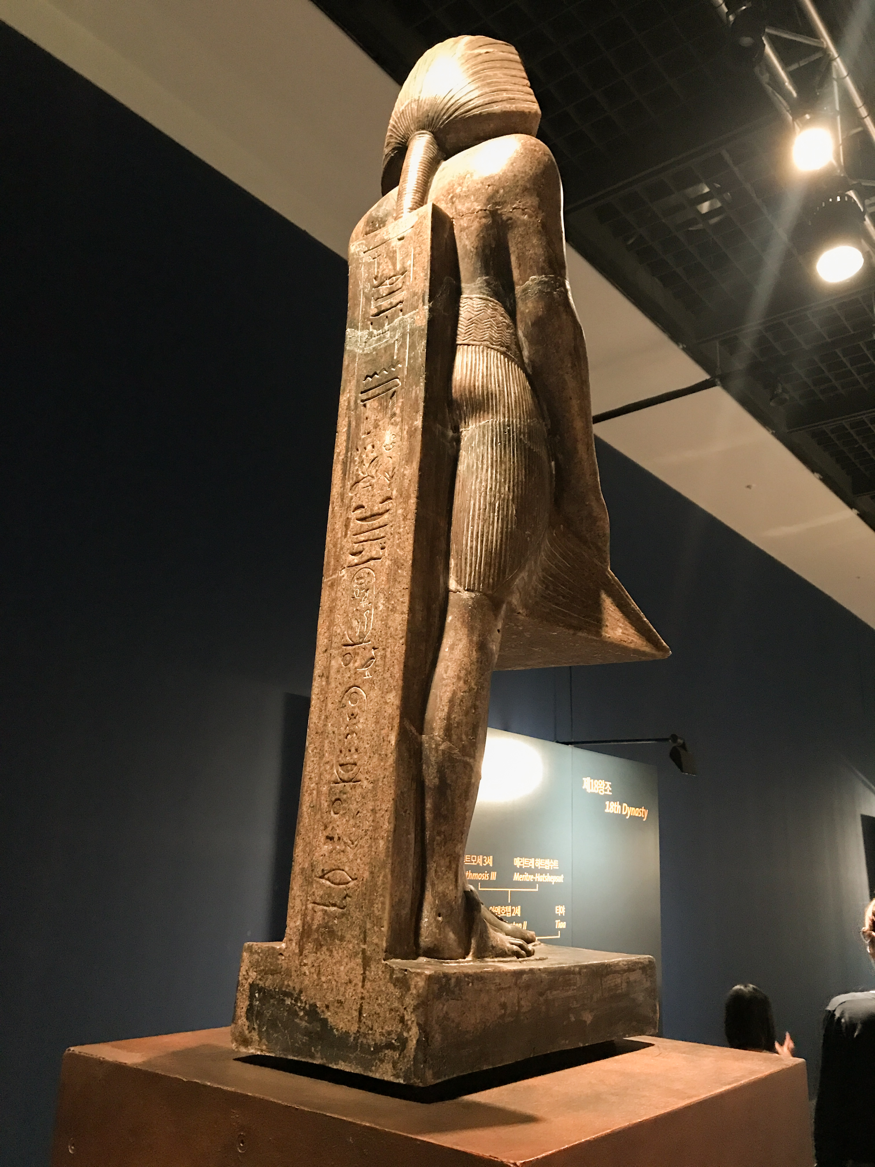전시의 '인트로'는 5,000년 이집트 역사를 한눈에 정리하고 투탕카멘 통치 당시 18왕조의 시대적 배경을 보여줍니다.