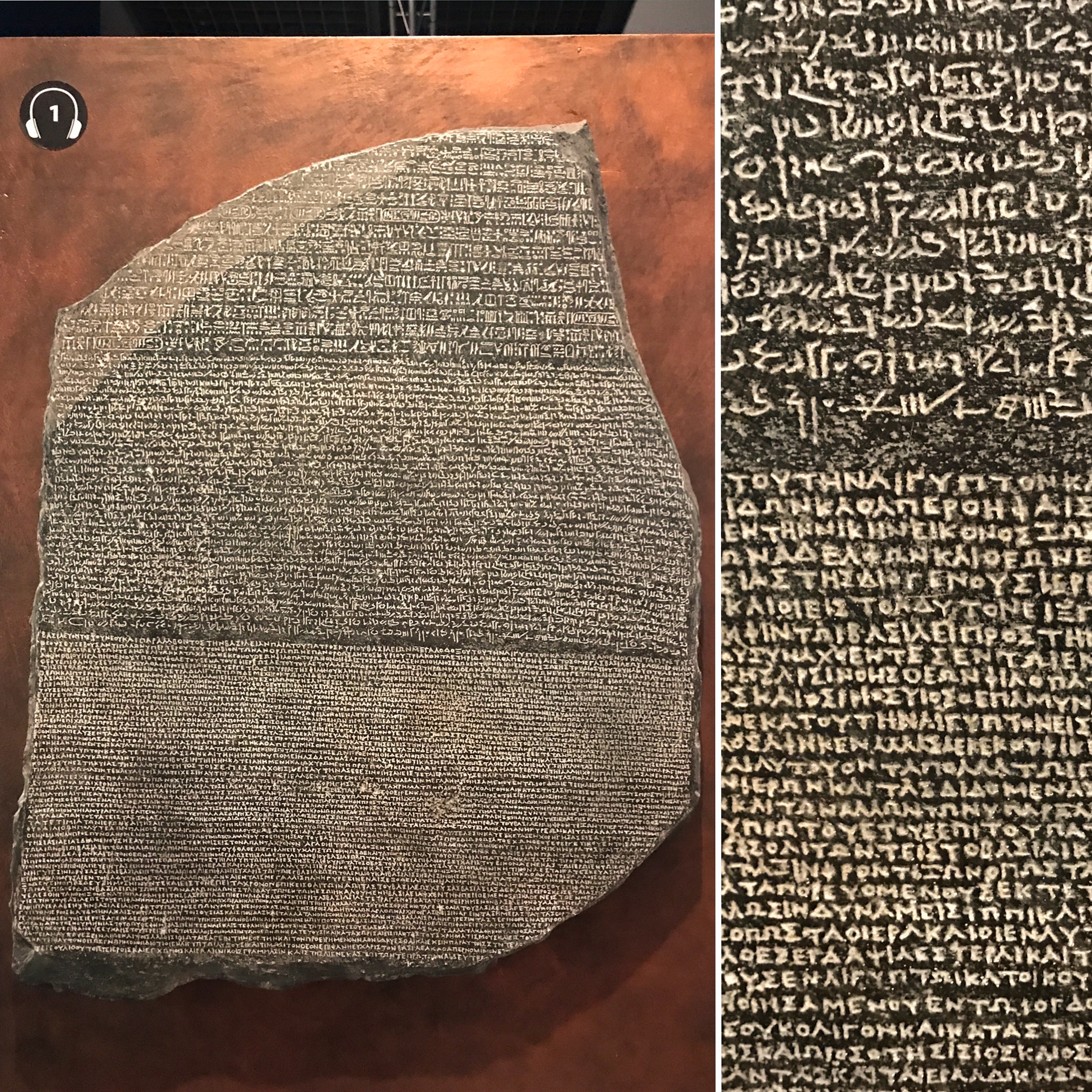 로제타 스톤은 다른 나라의 문화를 약탈하고 소유한 나폴레옹에 의해 프랑스로 옮겨졌다가 현재는 영국 대영박물관에 보관되어 있어요.