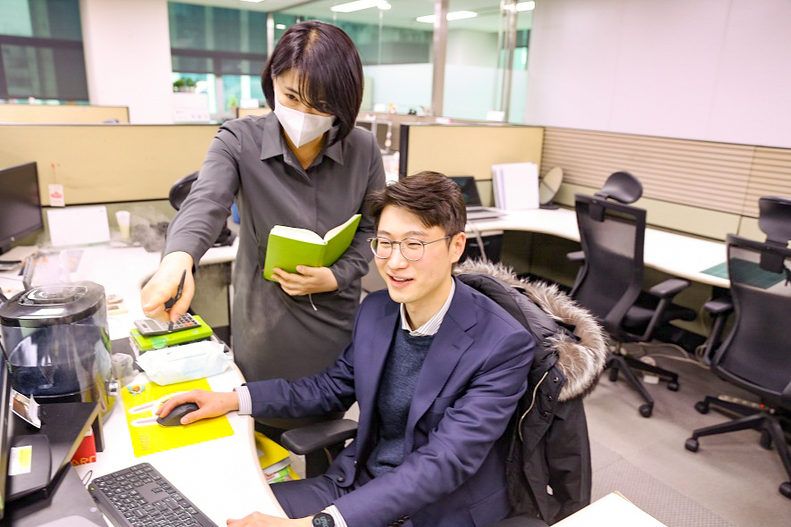 후배들에게 이야기해주고 싶은 장점은 젊은 선배들이 많은 회사라는 점입니다. 지난 7년간 채용을 꾸준히 해오면서 회사 전체 재직 인원 대비 MZ세대 비중이 거의 절반 가까이 되고 있습니다. 어느 부서에 가더라도 자신과 비슷한 연령대의 선배를 만날 수 있다는 것은 신입사원 입장에서 부서 및 업무 적응에 무척 유리한 부분이라고 생각합니다.