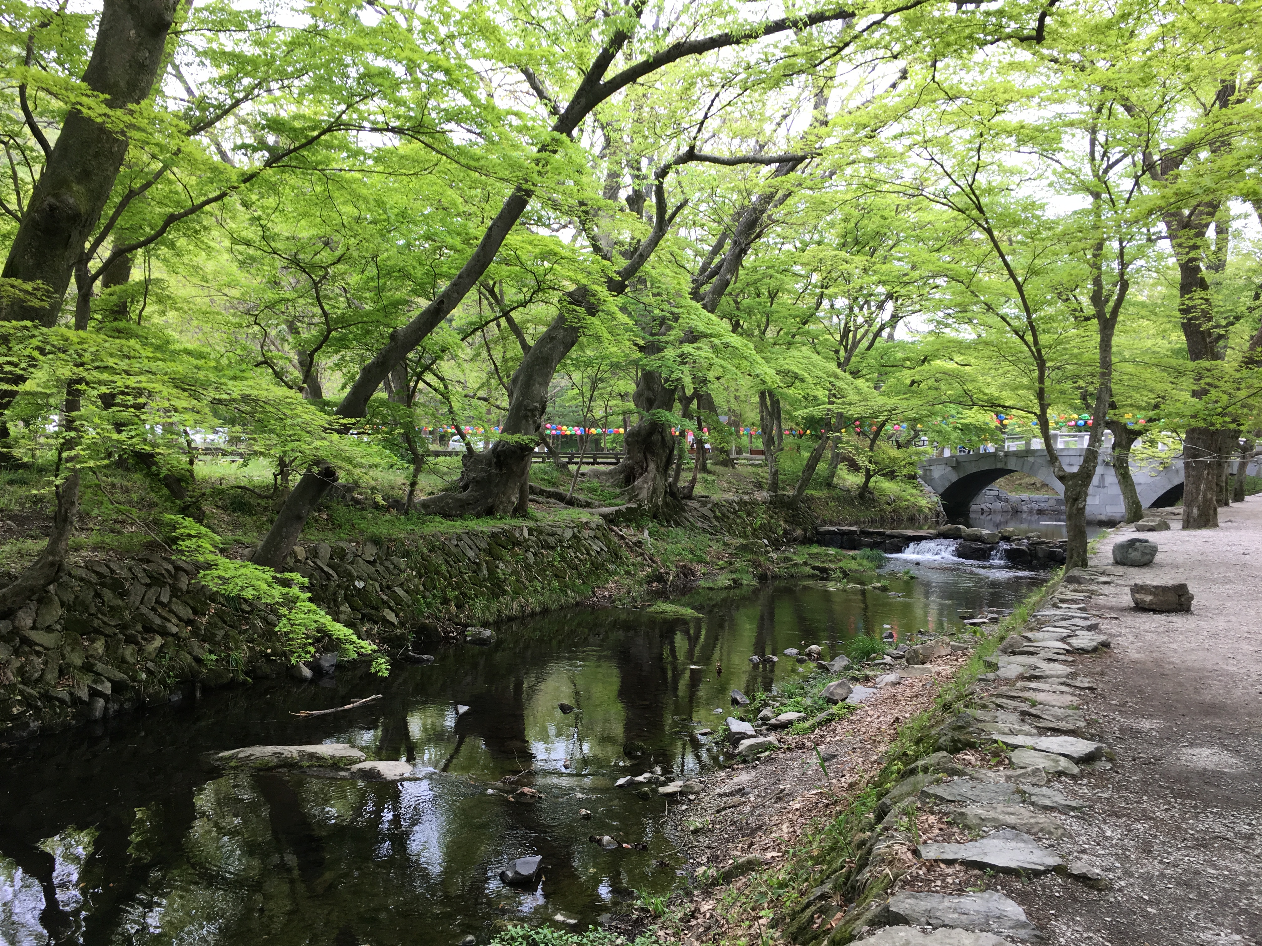 선운사를 오르는 길은 원만하게 흐르는 도솔천을 따라가다 보면 나와요. 느지막한 오후, 인적은 드물고 물오른 연둣빛 숲이 눈부셨답니다.