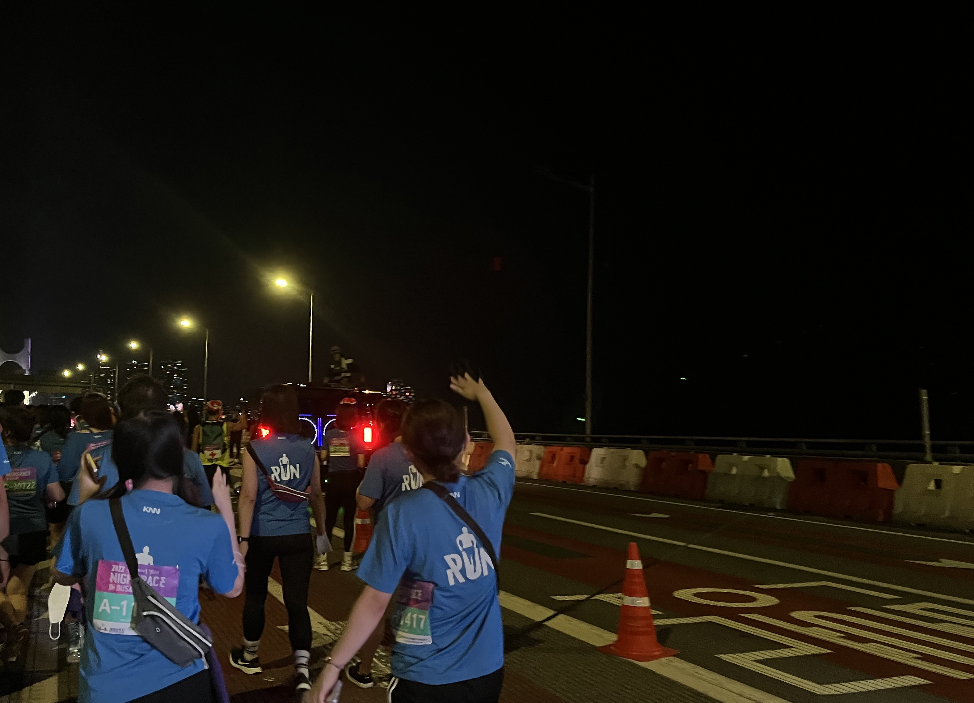 광안대교는 부산의 마스코트 같은 다리나 마찬가지라 부산 시민들 중에서도 광안대교를 걷기 위해 부산 나이트레이스에 참여한 분들이 많이 눈에 띄었습니다. 실제로도 대회가 종료된 직후에도 걸어가다 만난 시민분들, 택시 기사님 께서도 이 나이트레이스가 어땠는지, 광안대교에 직접 올라가 보니 감회가 새로웠는지 무척 궁금해하시는 분들이 많았어요. 부산에 살면서도 광안대교에 직접 올라갈 기회는 흔치 않기 떄문일까요?