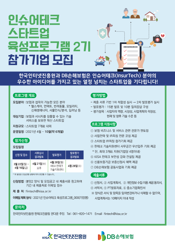 이와 함께 새로운 비즈니스 모델 창출을 희망하는 스타트업에 기업 운영에 필요한 지식과 보험 비즈니스를 제공하고, 스타트업이 성장할 수 있도록 엑셀러레이팅 프로그램도 병행했다.