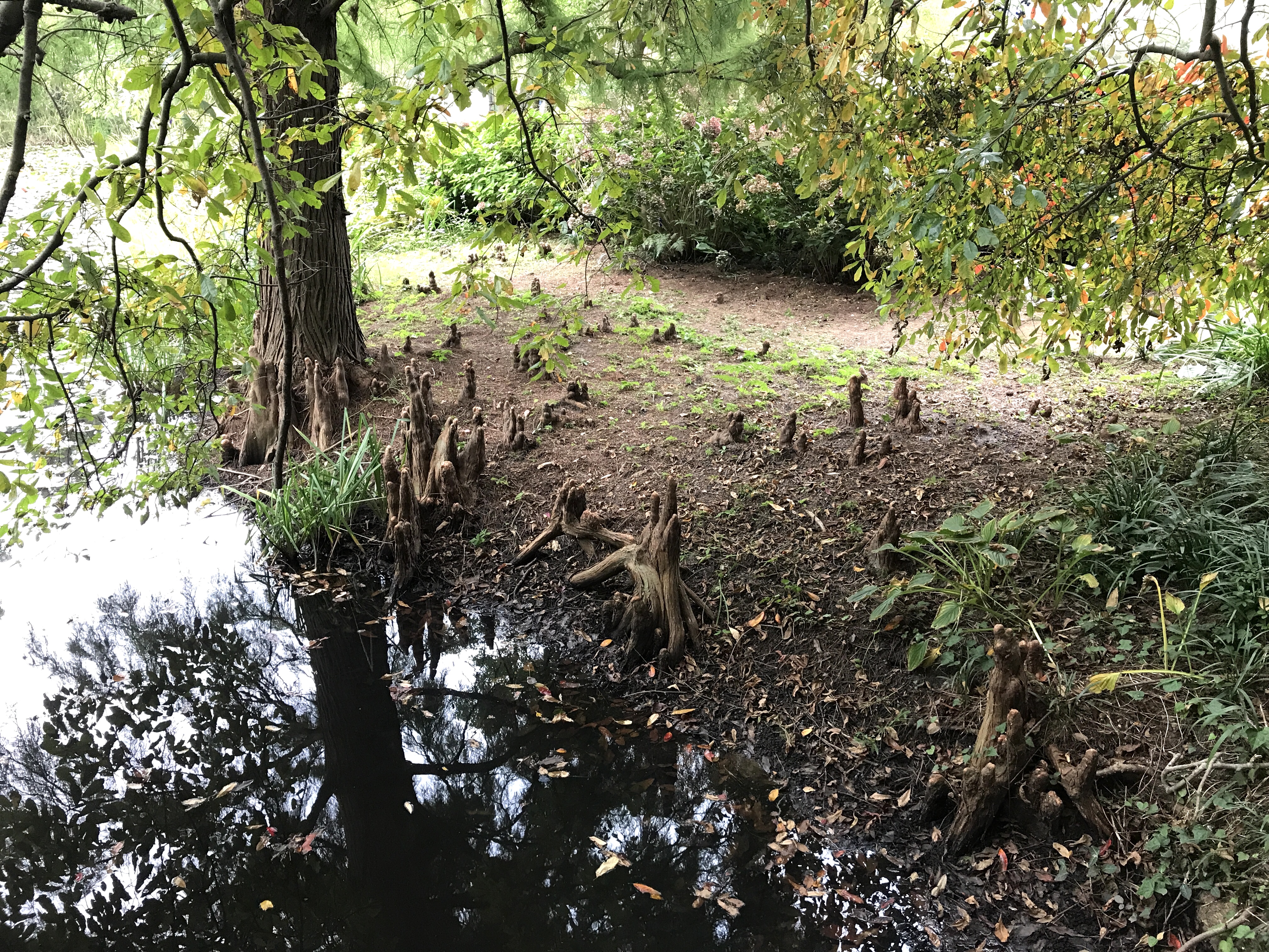 이곳 연못가에서는 땅을 뚫고 불쑥 솟아오른 낙우송의 뿌리를 쉽게 발견할 수 있는데요. 공기 중에 나와있는 뿌리란 뜻으로 ‘기근’이라고 불러요. 낙우송의 기근은 호흡을 하기 위해 노출이 되는데 아무래도 물가에서는 배수가 좋지 않고 숨쉬기 어렵기 때문에 기근을 발달시켜 살아가는 것이랍니다. 살기 위해 중력을 거슬러 하늘을 향해 자라는 낙우송의 기근을 보면 자연의 신비롭고 강한 생명력을 느낄 수 있어요.