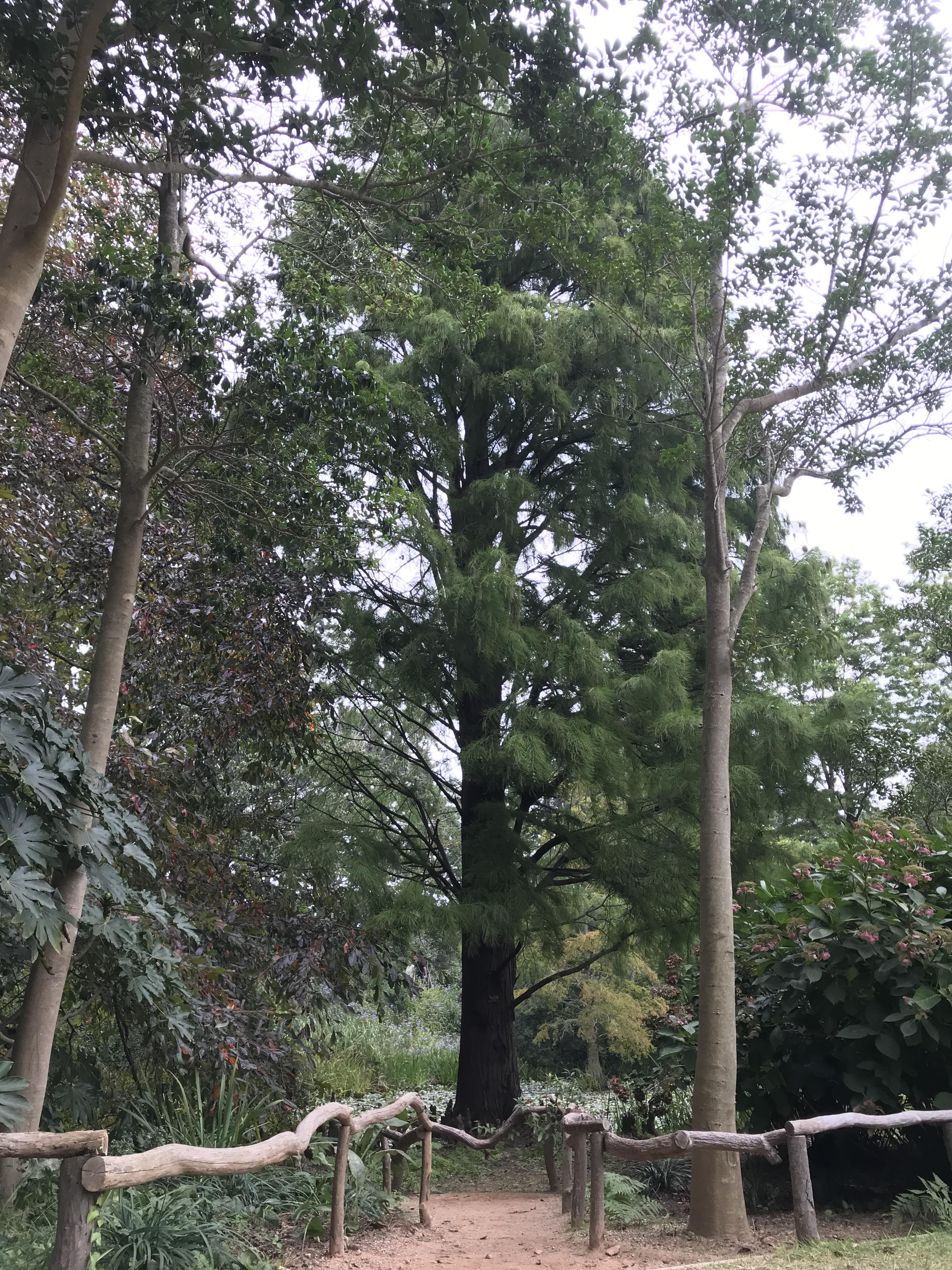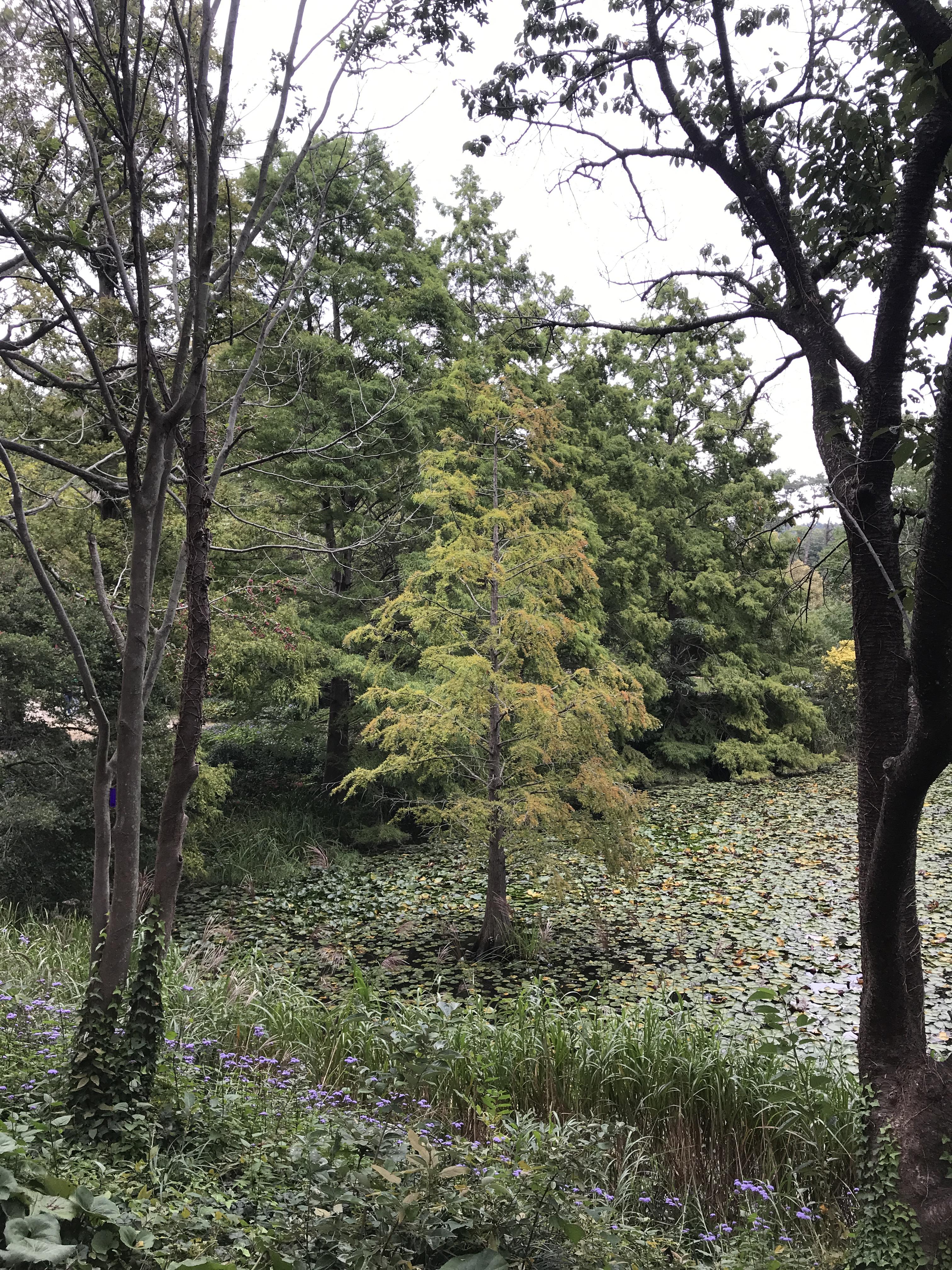 수목원을 산책하다 보면 예상치 못한 아름다움이 곳곳에서 튀어나오는 재미도 있어요. 민병갈 추모 정원 옆 연못가에 자라는 낙우송이 그중 하나입니다. 낙우송은 물을 좋아해 습지나 늪지, 호수가 근처에서 잘 자라고, 이런 특성 때문에 물을 그리워한다는 뜻의 ‘수향목’이라 불리기도 해요.