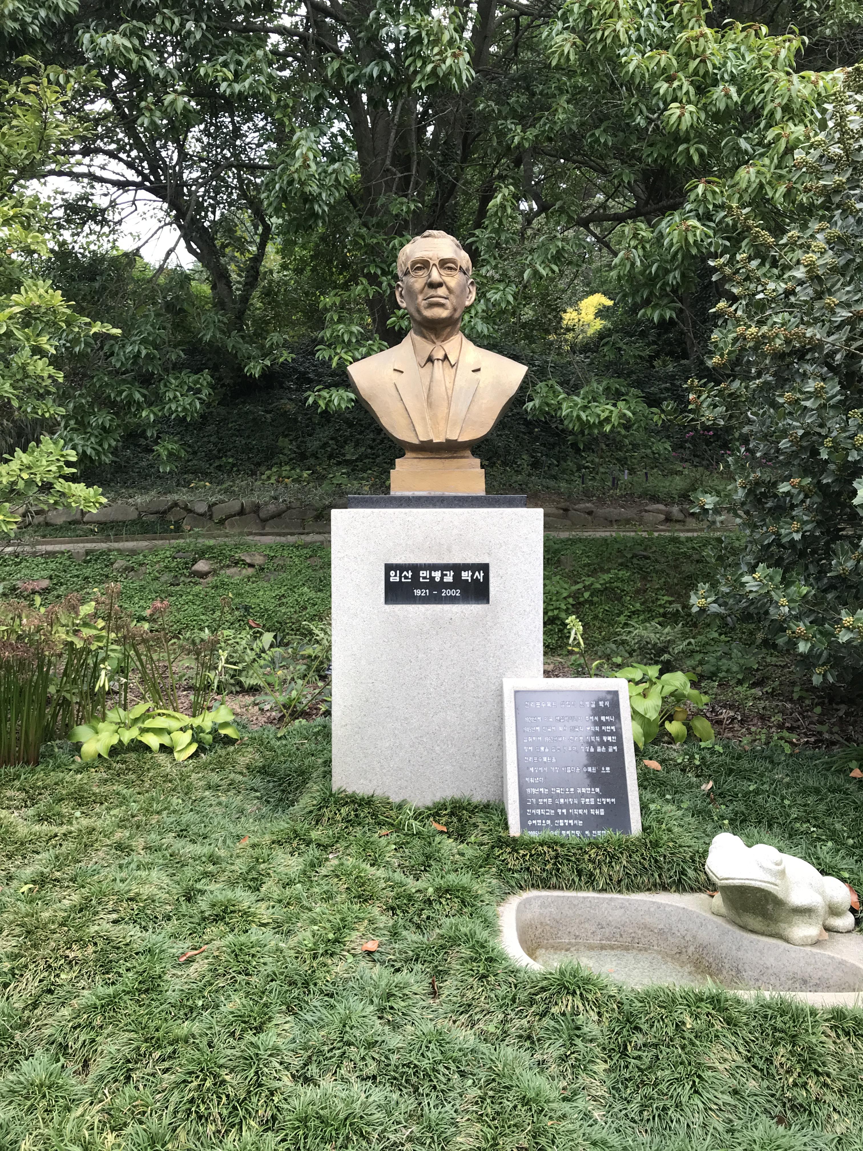 그는 단순히 나무 심기에만 열중한 것은 아니었어요. 한국의 나무와 식물을 세계에 전파하는 학술적인 노력과 한국의 식물학 발전을 위한 연구에도 열성을 다했답니다. 이러한 노력을 인정받아 2002년 정부로부터 금탑 산업훈장을 수여받았고, 2005년에는 국립수목원 ‘숲의 명예 전당’에 헌정되기도 했어요. 민병갈 박사는 2002년 4월 평생을 연구하고 수집한 학술자료와 소장품을 ‘우리나라’에 기증하고, 81세의 나이로 이곳 천리포수목원에 잠들었습니다.