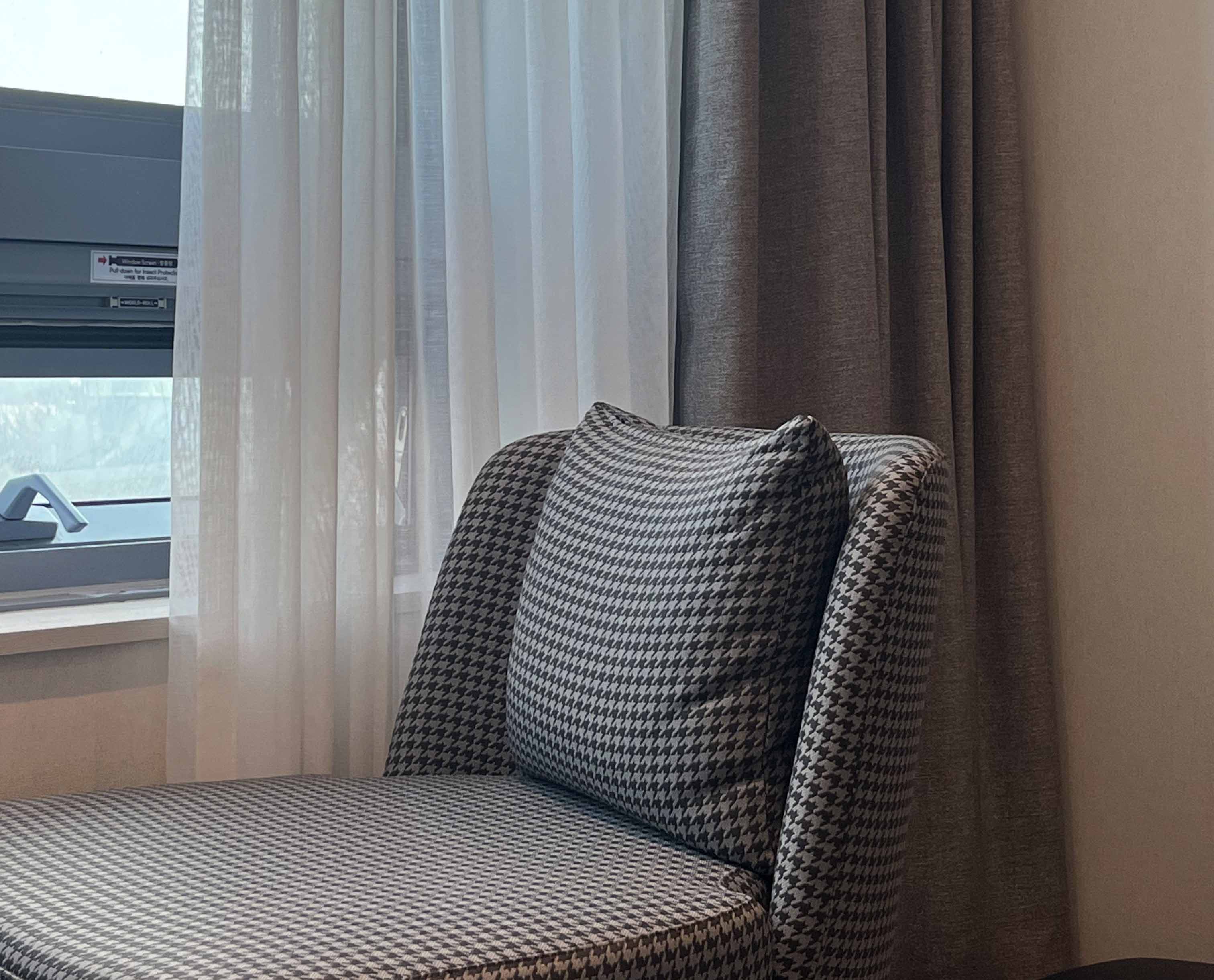 인터불고 엑스코 호텔은 리모델링과 함께 객실들도 모두 신식으로 새롭게 교체되었다고 하는데요. 이 리모델링된 객실들은 디럭스 레벨 이상의 객실들에 적용되었다고 하니, 투숙 시 스탠다드 객실보다는 디럭스 이상 객실을 추천드려요. 저는 디럭스 더블 객실을 이용하였는데요. 가운과 슬리퍼, 어메니티와 물, 커피와 차는 투숙 인원에 맞게 준비되어 있었고, 간이 테이블과 의자가 따로 준비되어 있어 커피와 다과를 즐길 수 있었습니다.