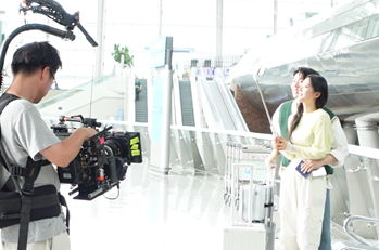 이후 마지막 촬영은 인천공항을 배경으로 했다. 실제 커플 못지않게 잘 어울리는 두 배우와의 촬영은 특히나 감독님이 몸소 시범을 보여주시며 컷을 담아냈다. 마지막 컷을 촬영할 때는 배우들의 자연스러운 웃음을 담아내기 위해서 스태프들 모두가 “하하하~” 함께 웃으며 마지막까지 화기애애한 분위기를 자아냈다.