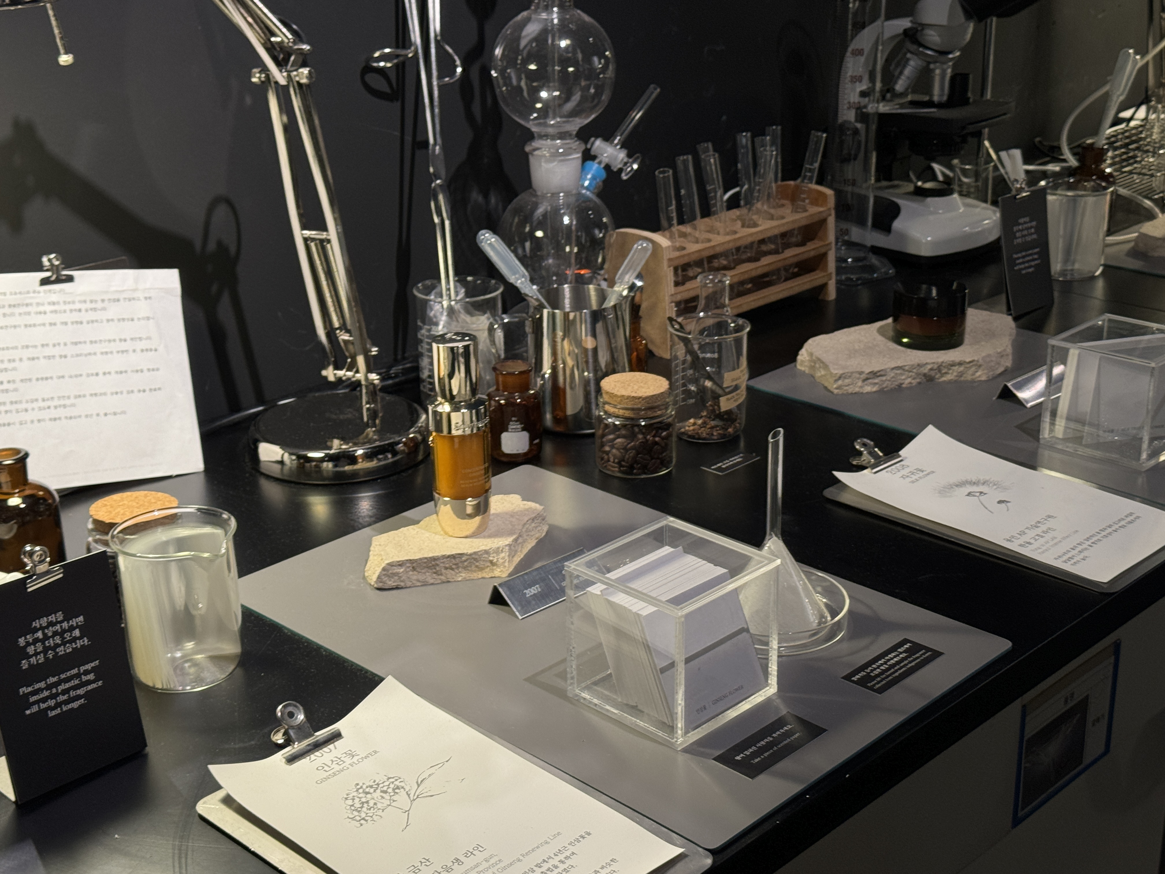 마련된 공간을 둘러보면 아모레가 별도로 개발한 다양한 향들과 원료에 대한 설명, 그리고 그 원료들이 추출되는 과정들을 한자리에서 볼 수 있어요.