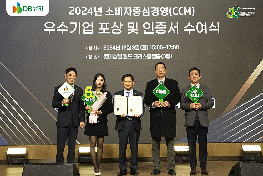 DB생명(대표이사 사장 김영만)은 5회 연속 소비자중심경영(CCM) 인증을 획득했다고 12월 11일 밝혔다.