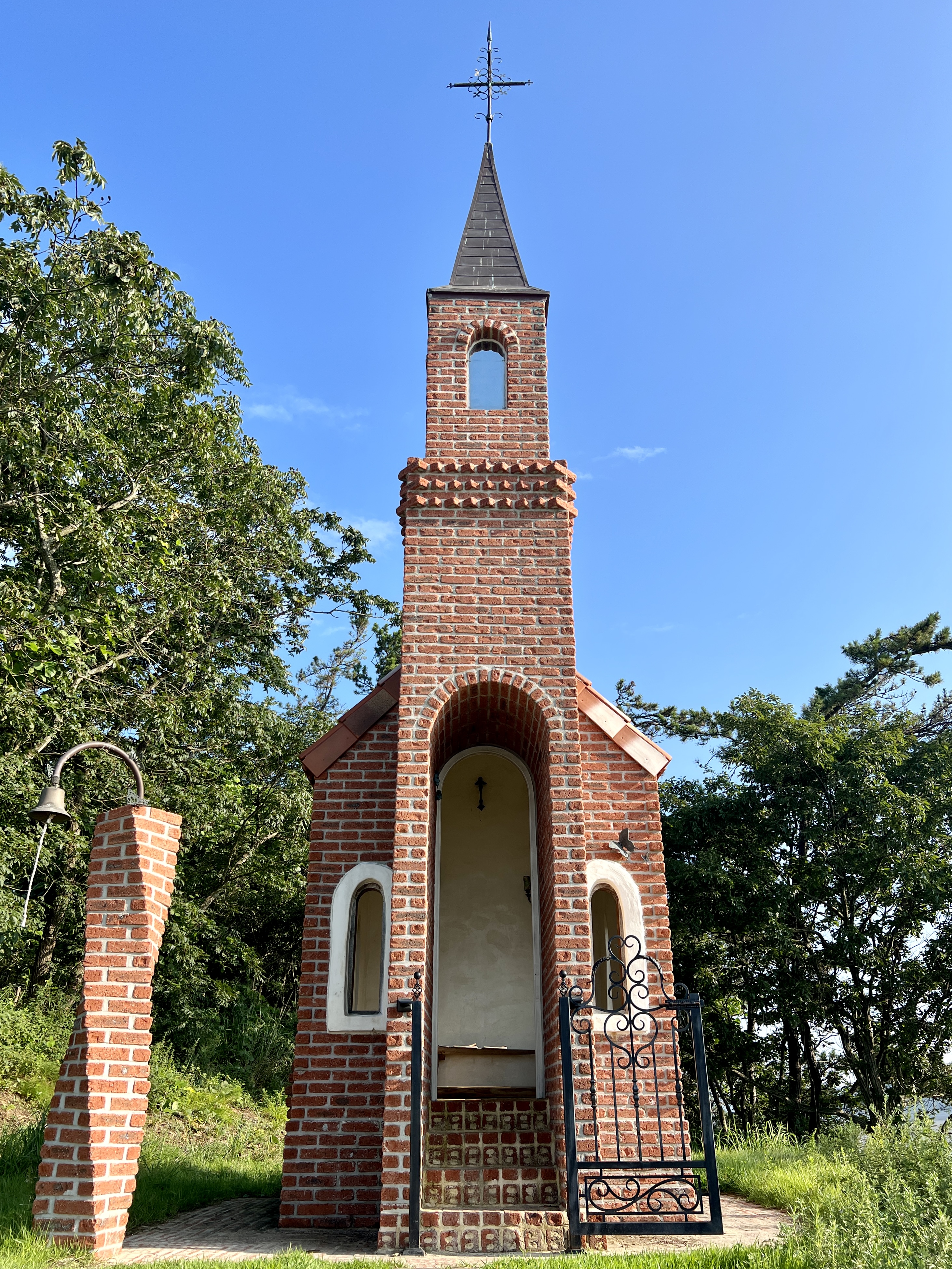 예배당 입구에는 나선형 벽돌 종루가 세워져 있어요. 이 종을 열두 번 치면 12km의 순례자의 길을 걸어온 순례자가 무사히 순례가 마무리되었음을 알리게 됩니다.