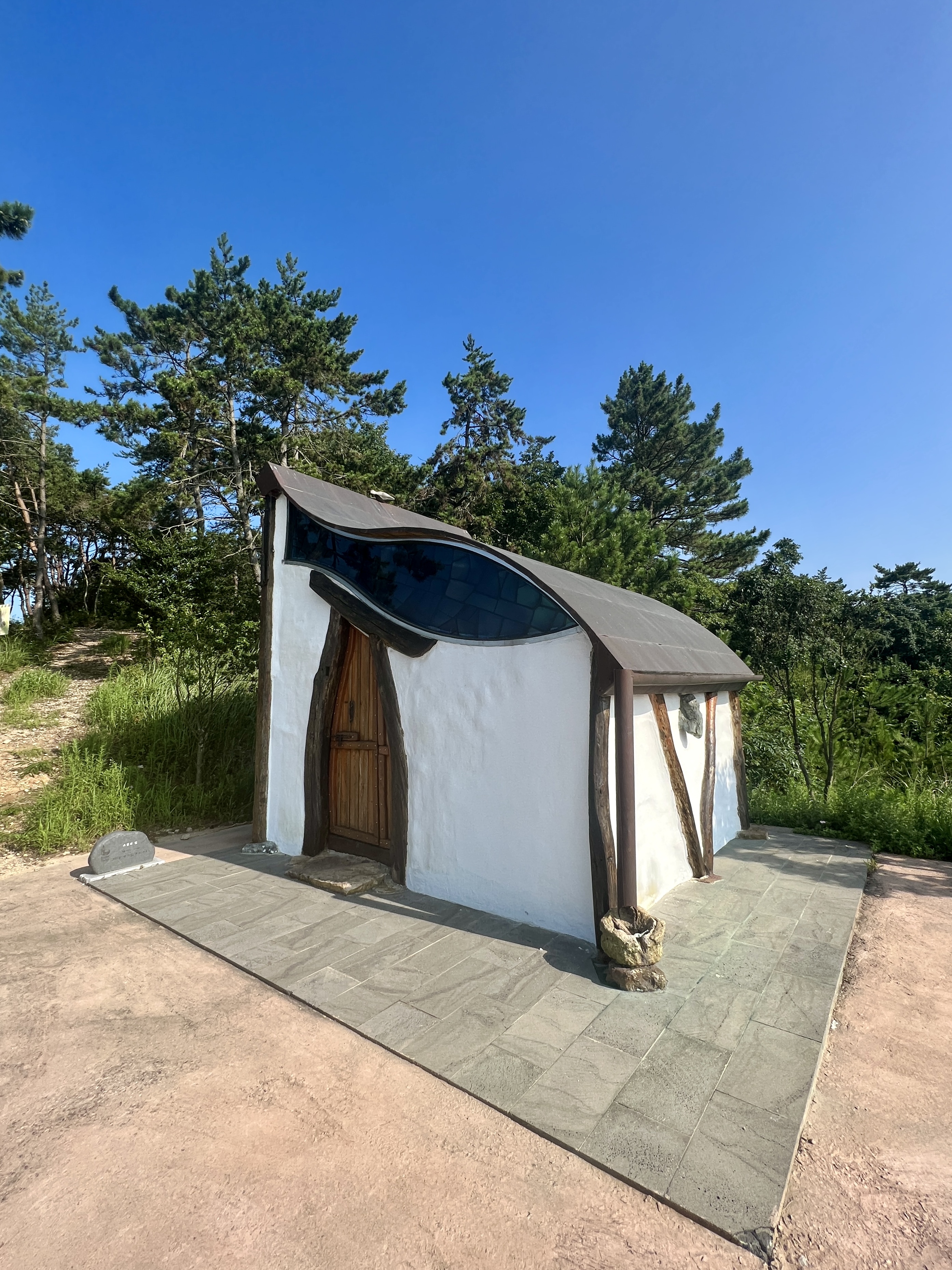 해안가 솔숲 가장자리에 '사랑의 집'이 있어요. 시몬의 예배당입니다. 실내외 공간이 구분되지 않는 개방형 구조로 자연을 예배당 안으로 끌어들인 강영민 작가의 작품이에요.