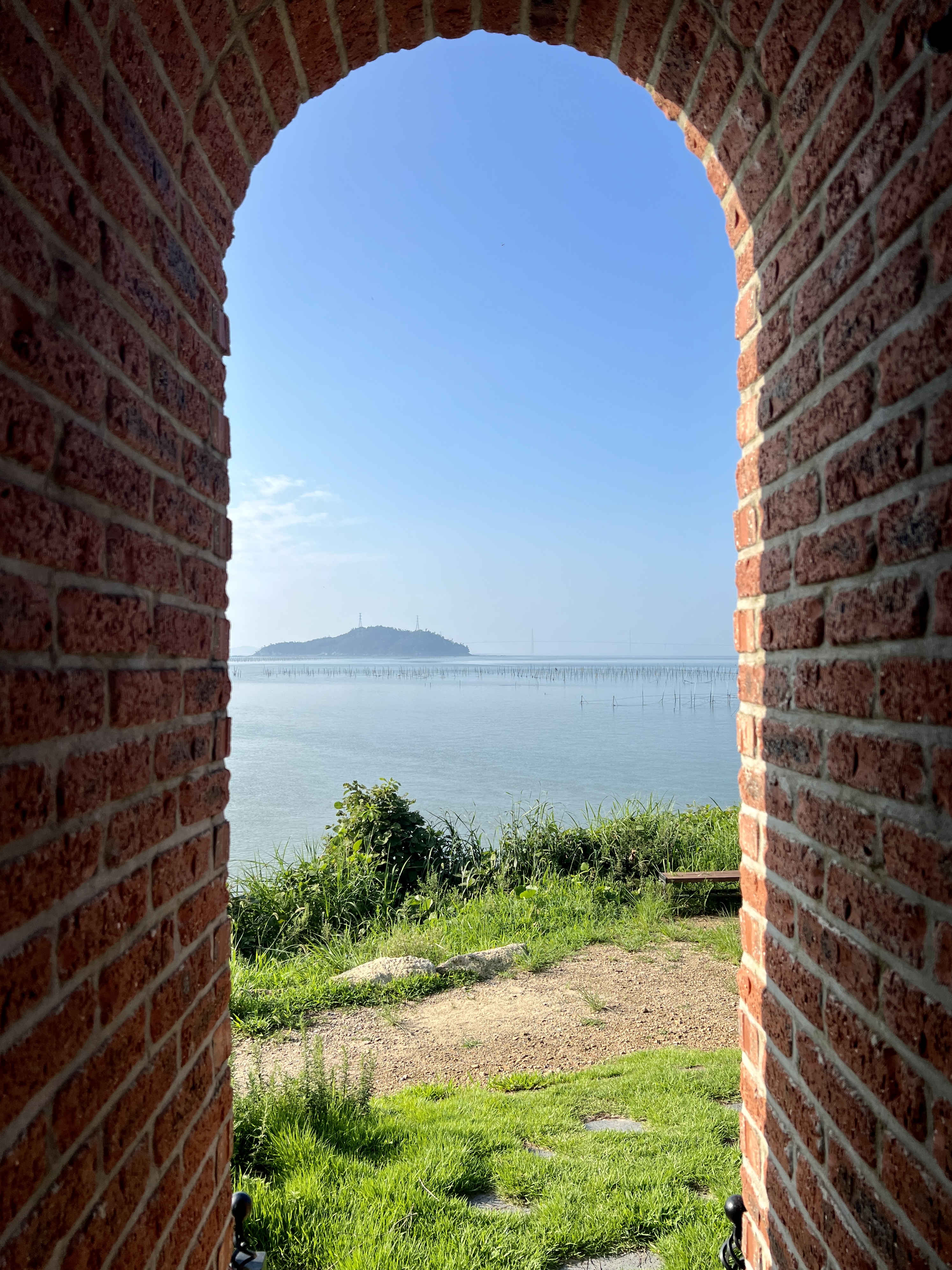 십자형 구조를 가진 이 작품은 세면의 벽에 난 큰 창문 너머로 드넓은 갯벌과 바다가 보여요. 사방에서 들어오는 갯바람에 땀을 식혔어요.