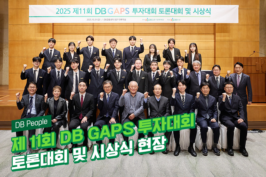 2025년 10월 31일, DB금융센터에서 ‘제11회 DB GAPS 투자대회 토론대회 및 시상식’이 열렸다. DB GAPS는 DB김준기문화재단이 주최하고 DB증권이 주관하는 국내 대표 자산배분 투자대회로, 대학생과 대학원생을 대상으로 건전한 투자문화 정착과 합리적 자산운용 사고력 향상을 목표로 한다.
