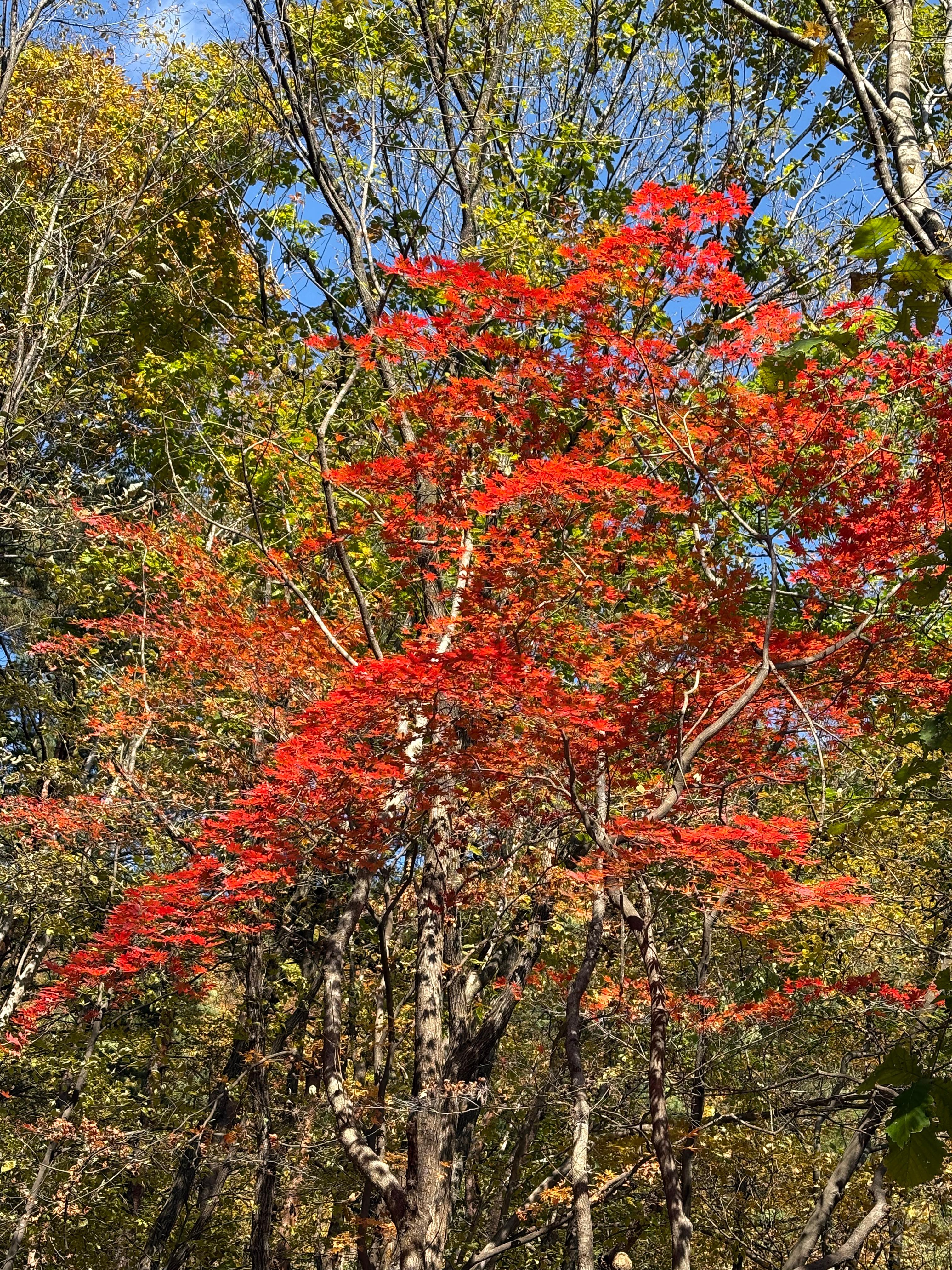 빛이 스치면 나뭇잎이 반짝이고, 바람이 불면 그 빛이 흩날리는 덕에 숲 속은 마치 붉은 빛과 노란빛이 뒤섞인 살아 있는 그림처럼 느껴졌고, 발자국을 옮길 때마다 들려오는 낙엽의 바스락거림이 발걸음에 리듬감을 실어주었습니다. 중간중간 나무 사이로 들어오는 햇살이 만들어내는 빛의 터널은 사진으로는 다 담을 수 없었던, 그래서 온몸으로 음미하게 됐던 특별한 광경이었습니다.