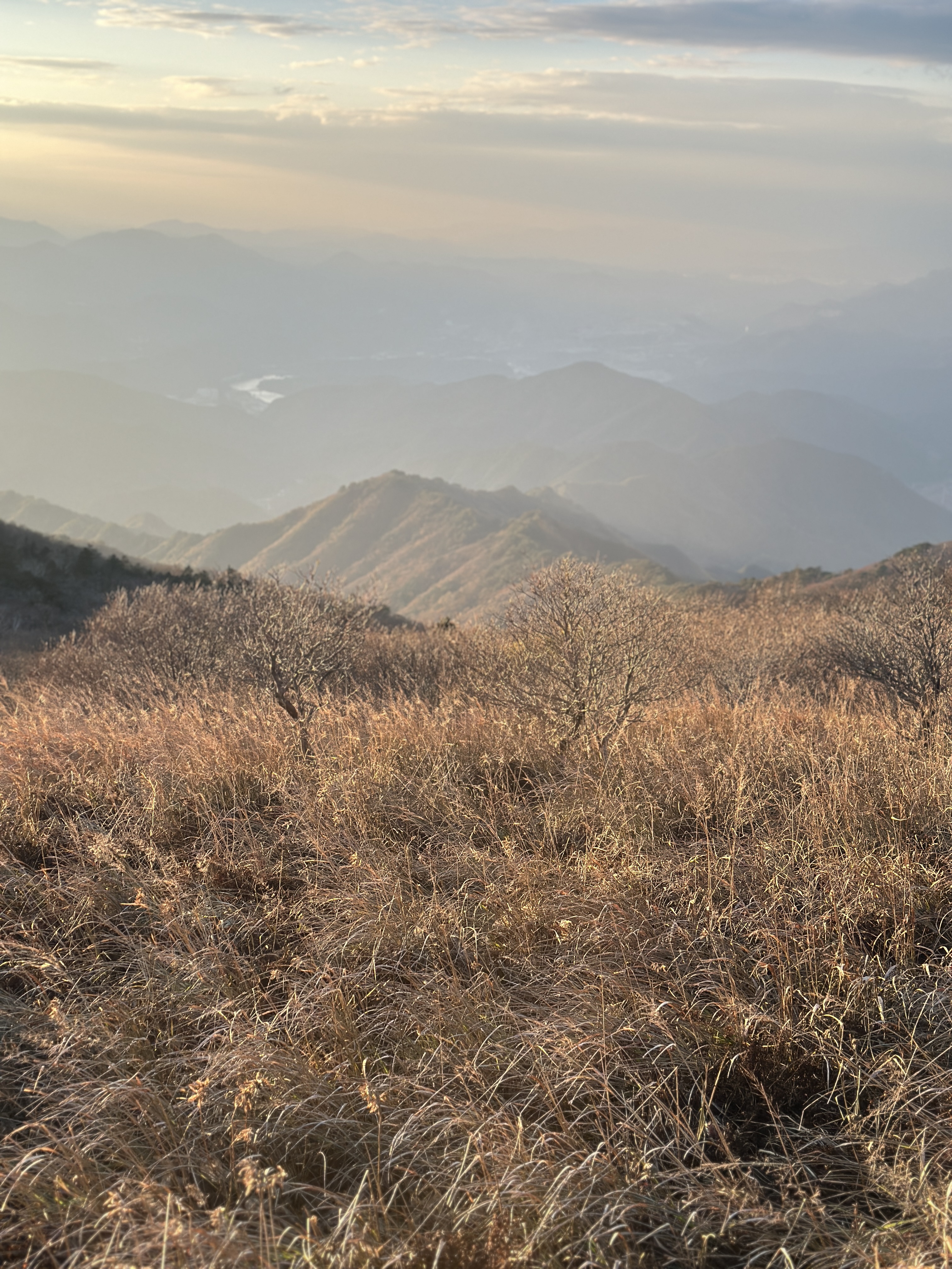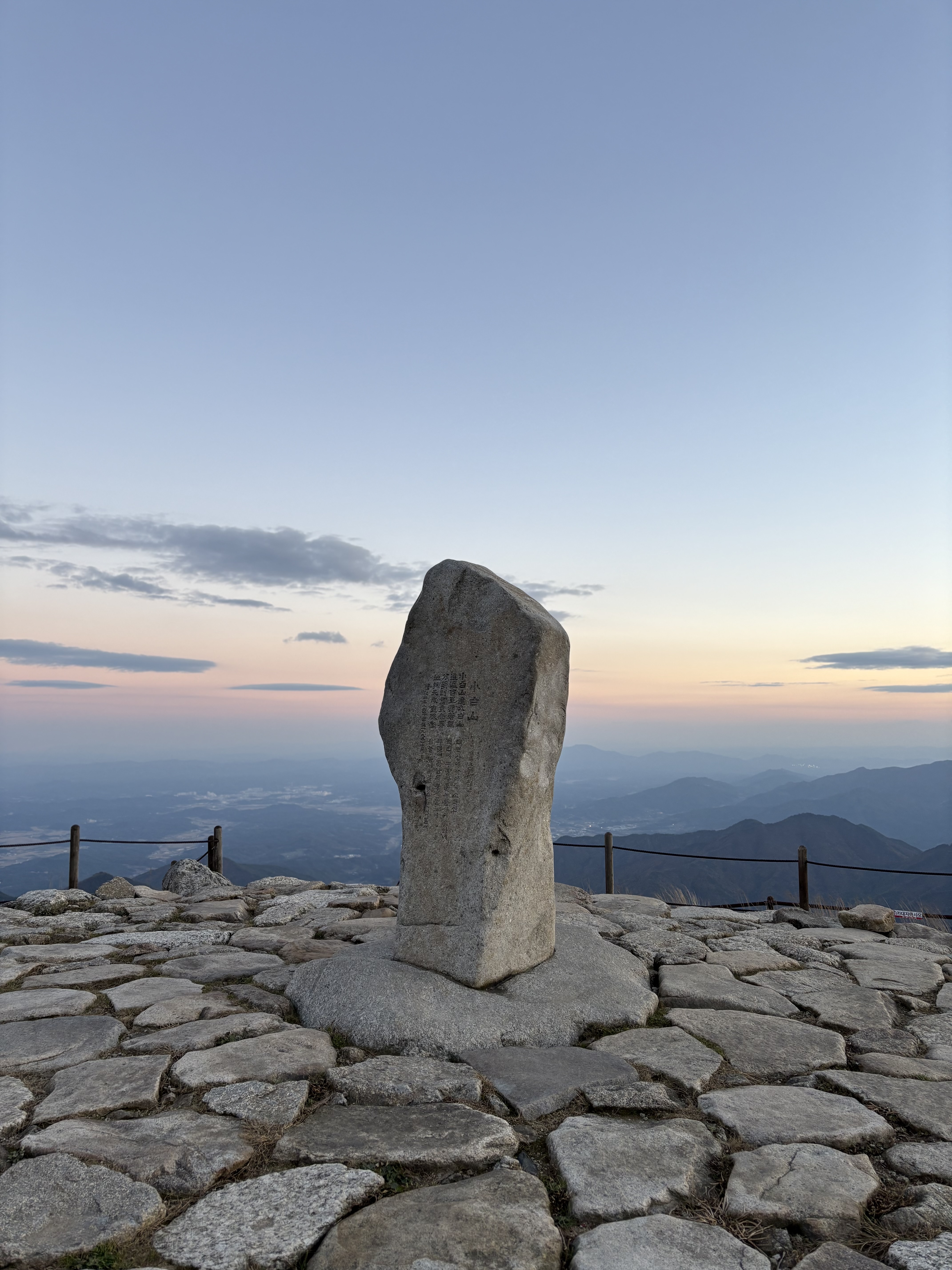 해가 서쪽 능선으로 기울기 시작할 무렵, 마침내 헉헉거리는 숨과 함께 비로봉에 도착하였습니다. 비로봉까지 오는 길, 이곳저곳에 한 눈이 팔려 오래도록 넋 놓고 있던 탓에, 해가 저물어 비로봉에서 바라보는 산맥들의 절경이 아쉬울까 걱정이었지만 막상 도착해 보니 그것은 기우에 불과하였습니다. 조급했던 게 무색할 정도로, 비로봉은 늘어져 있는 노을을 품은 채 여유로운 모습으로 맞아주었습니다. 해가 점점 짧아져 오래도록 즐길 순 없었지만, 오히려 그 광경이 이 순간을 오래도록 간직할 수 있도록 만들어주는듯 하였습니다.