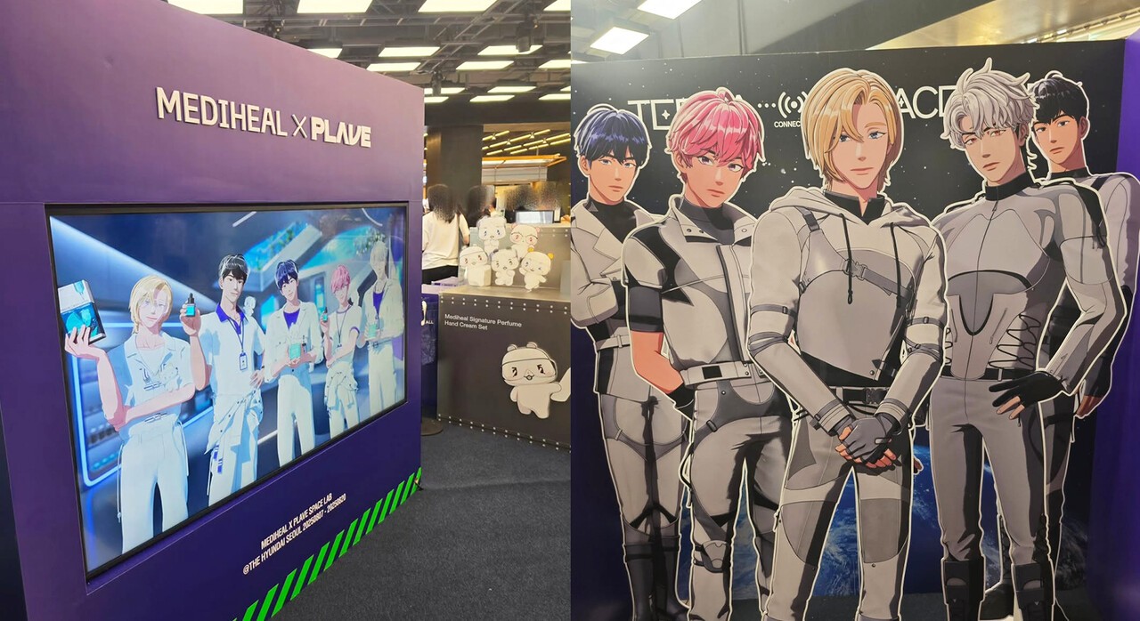 해외 공연이 있다면 다른 케이팝 스타들은 비행기를 타고 날아가서 분장하고 리허설을 해야 하는데, 가상 아이돌 멤버들은 스튜디오에서 그대로 가상 공연을 펼치면 돼요. 최근에는 대표적인 가상 아이돌 ‘플레이브’의 팝업 스토어가 더현대서울에서 열려 팬들의 초대박 오픈런이 이어졌어요. 포토박스에 들어가면 플레이브 멤버와 같이 사진을 찍을 수 있도록 해 진짜 팬미팅 온 것 같은 물성이 포인트였어요.