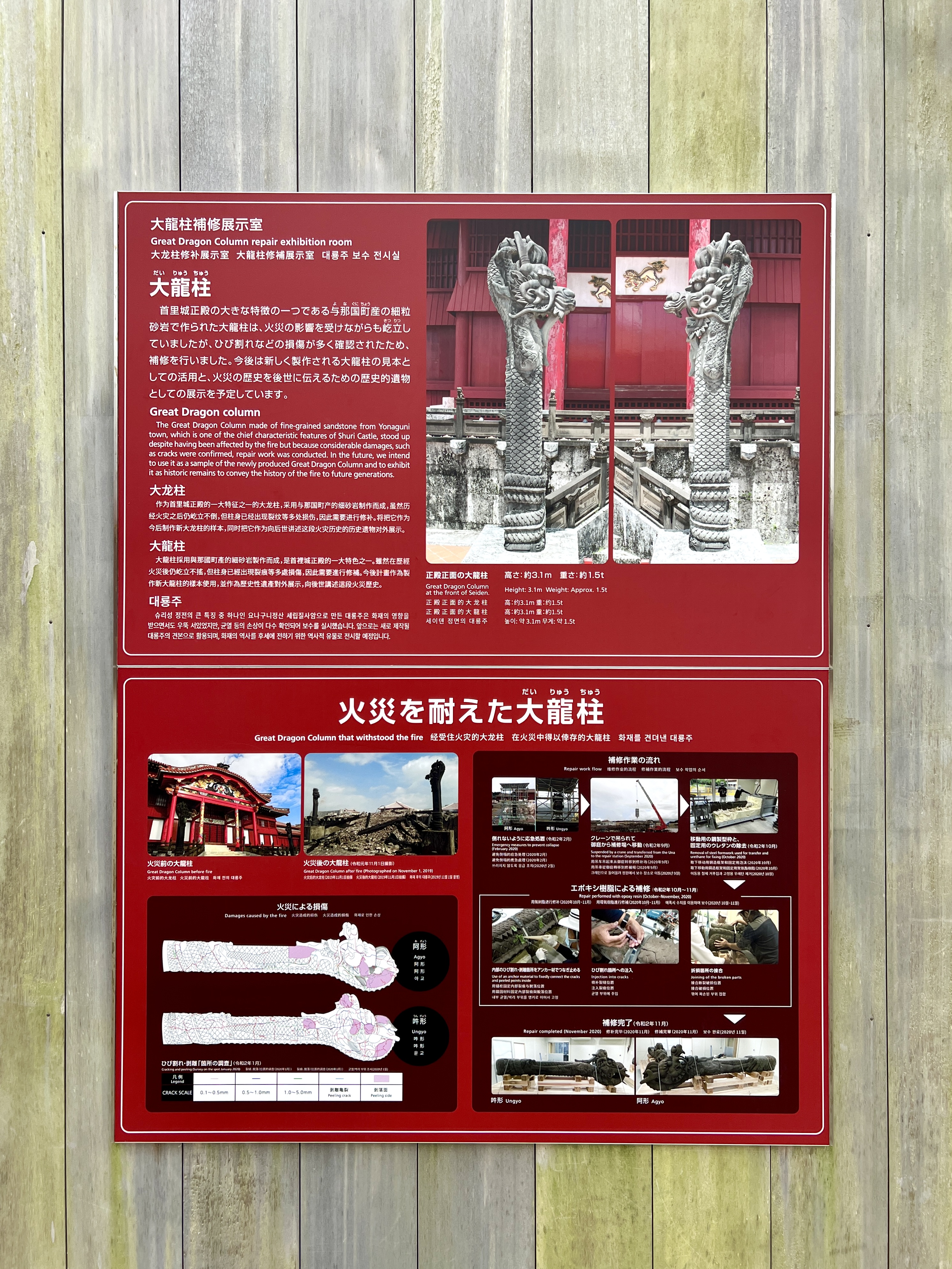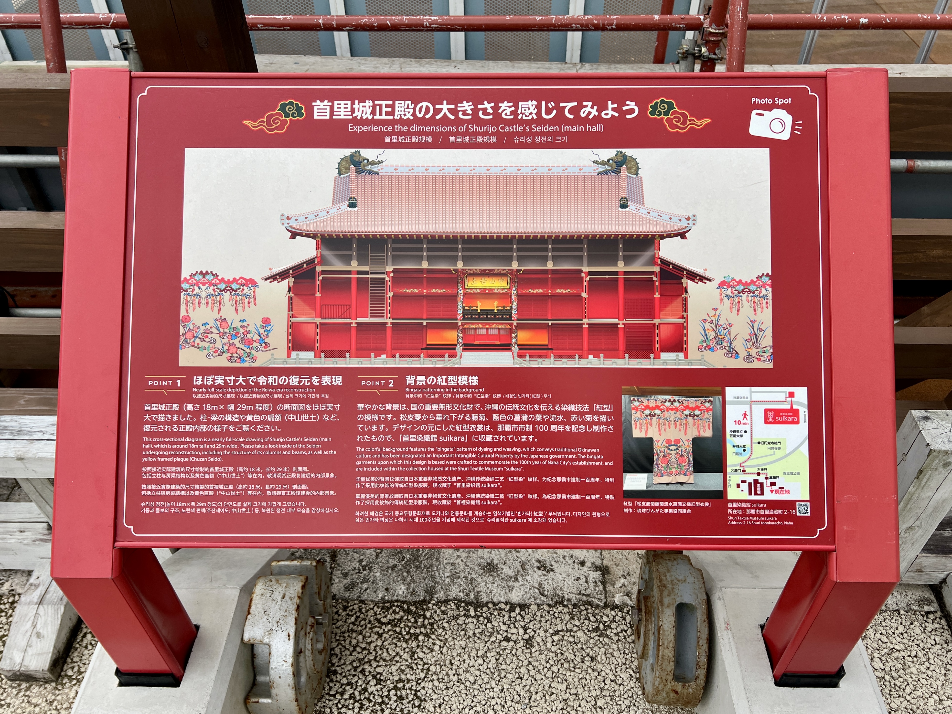2026년 완공을 목표로 한창 작업 중인데요. 타버린 세이덴의 부재와 재를 철거하고 유구를 보호하는 조치를 강구하는 등 류큐왕국 시대의 모습에 최대한 가깝게 복원하기 위해 노력하고 있어요.