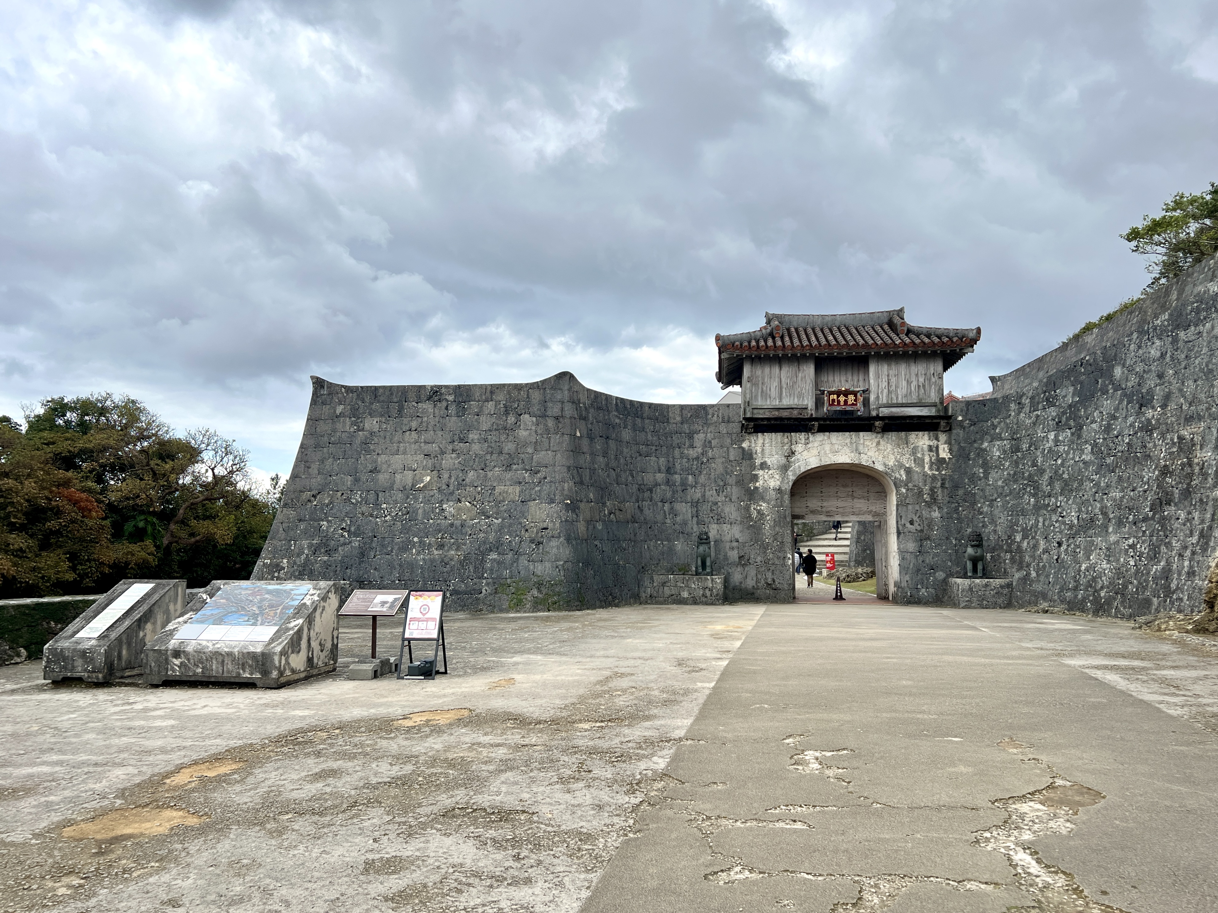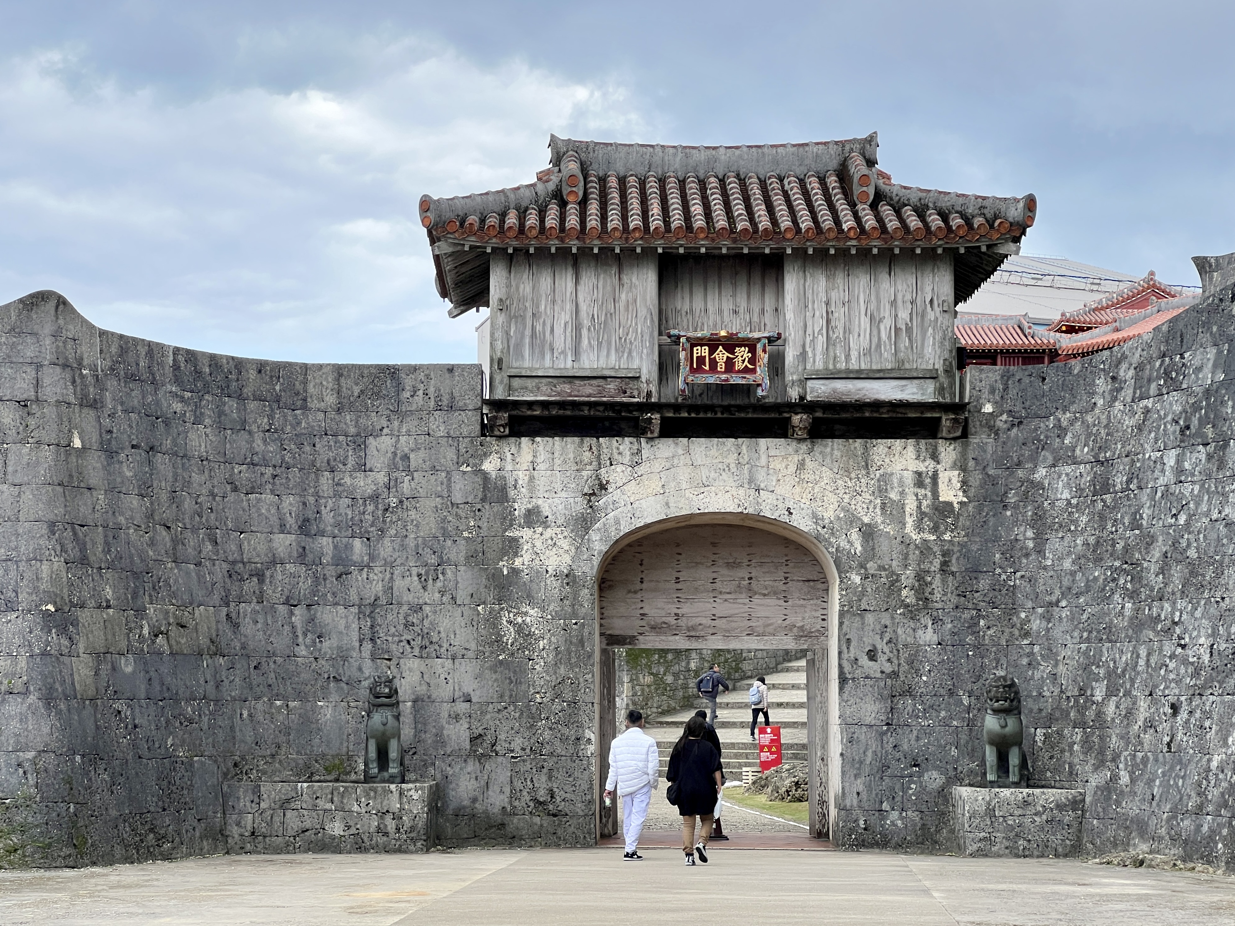 슈리성은 외곽과 내곽 이중으로 둘러싸여 있어요, 간카이몬은 외곽의 첫째 문으로 슈리성 성곽 안으로 들어가는 정문이에요. ‘간카이(歓会)’란 ‘환영한다’라는 의미입니다.